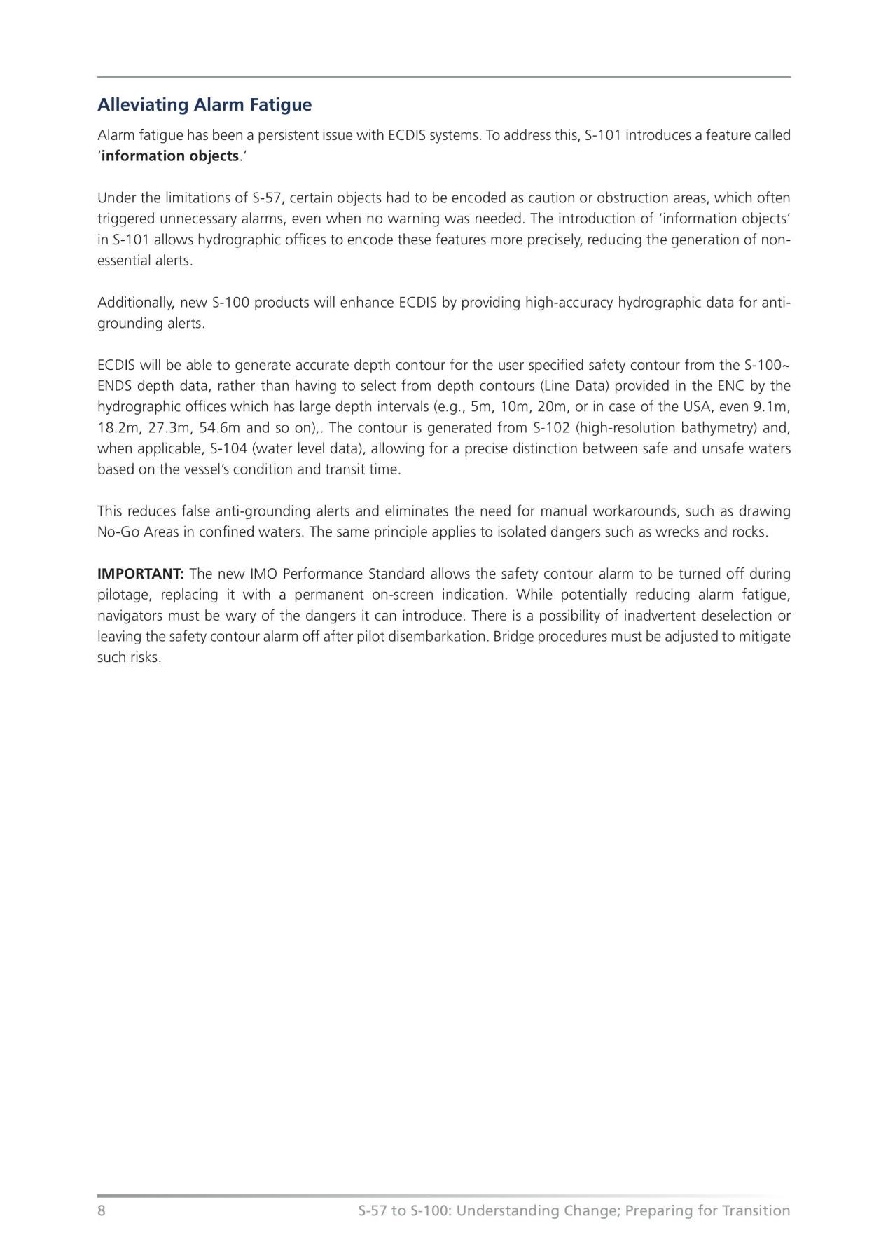 新型S-100 ECDIS旨在为用户提供安全导航所需信息,同时确保显示信息和警报不会过度繁杂。然而,要实现这一点,用户需要对系统有正确的理解并正确配置其设置。因此,适当的培训和熟悉不仅是发挥新标准全部潜力的关键,也是确保航行安全的关键。例如,新标准引入了新的指示(关于互操作性、S-100产品重叠、垂直基准不兼容等)和许多新的用户控件。这些控件涉及不同模式的管理、重叠S-100产品的选择、深度信息来源、图示目录(Portrayal Catalogues)的选择、水位调整(Water LevelAdjustments)等诸多方面。