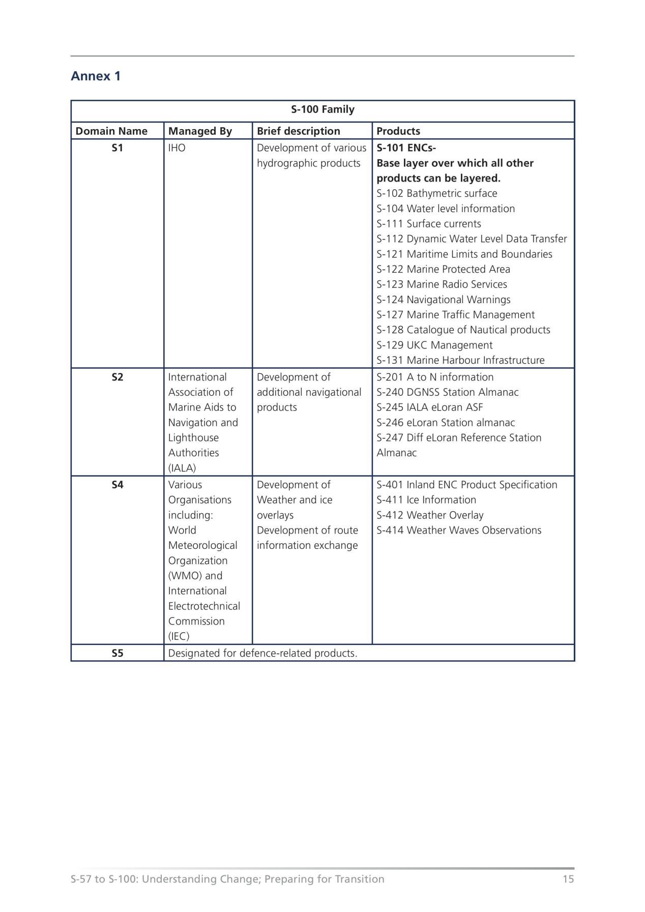第一阶段(航线监控):包括S-101(ENC)、S-102(水深表面数据)、S-104(水位信息)、S-111(表层水流)、S-124(航行警告)、S-129(富裕水深管理)等;