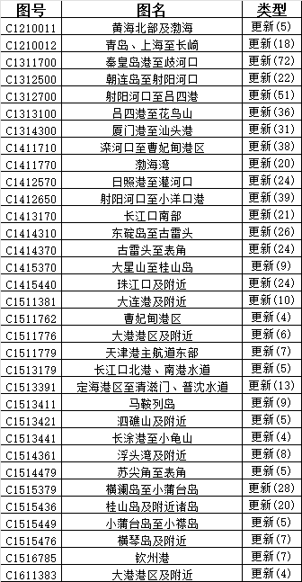 2025年11月14日 星期五(2025年第45周),中国海军海道测量局海图数据变化: