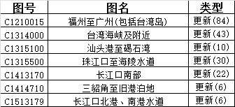 2025年11月21日 星期五(2025年第46周),中国海军海道测量局海图数据变化: