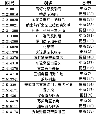 2025年12月19日 星期五(2025年第50周),中国海军海道测量局海图数据变化: