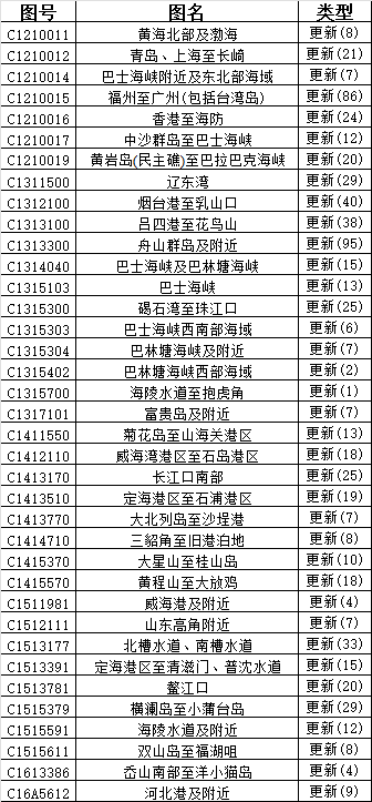2025年12月26日 星期五(2025年第51周),中国海军海道测量局海图数据变化:
