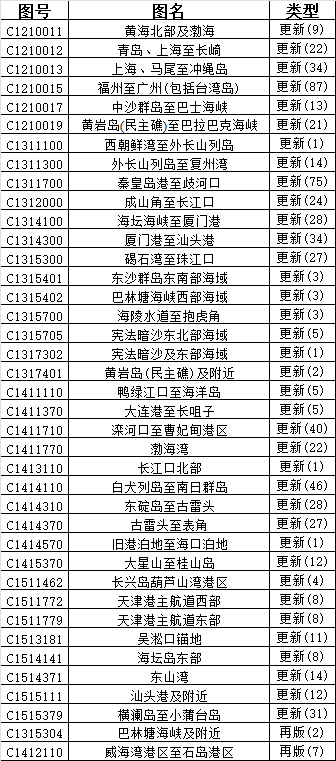 2026年1月9日 星期五(2026年第1周),中国海军海道测量局海图数据变化: